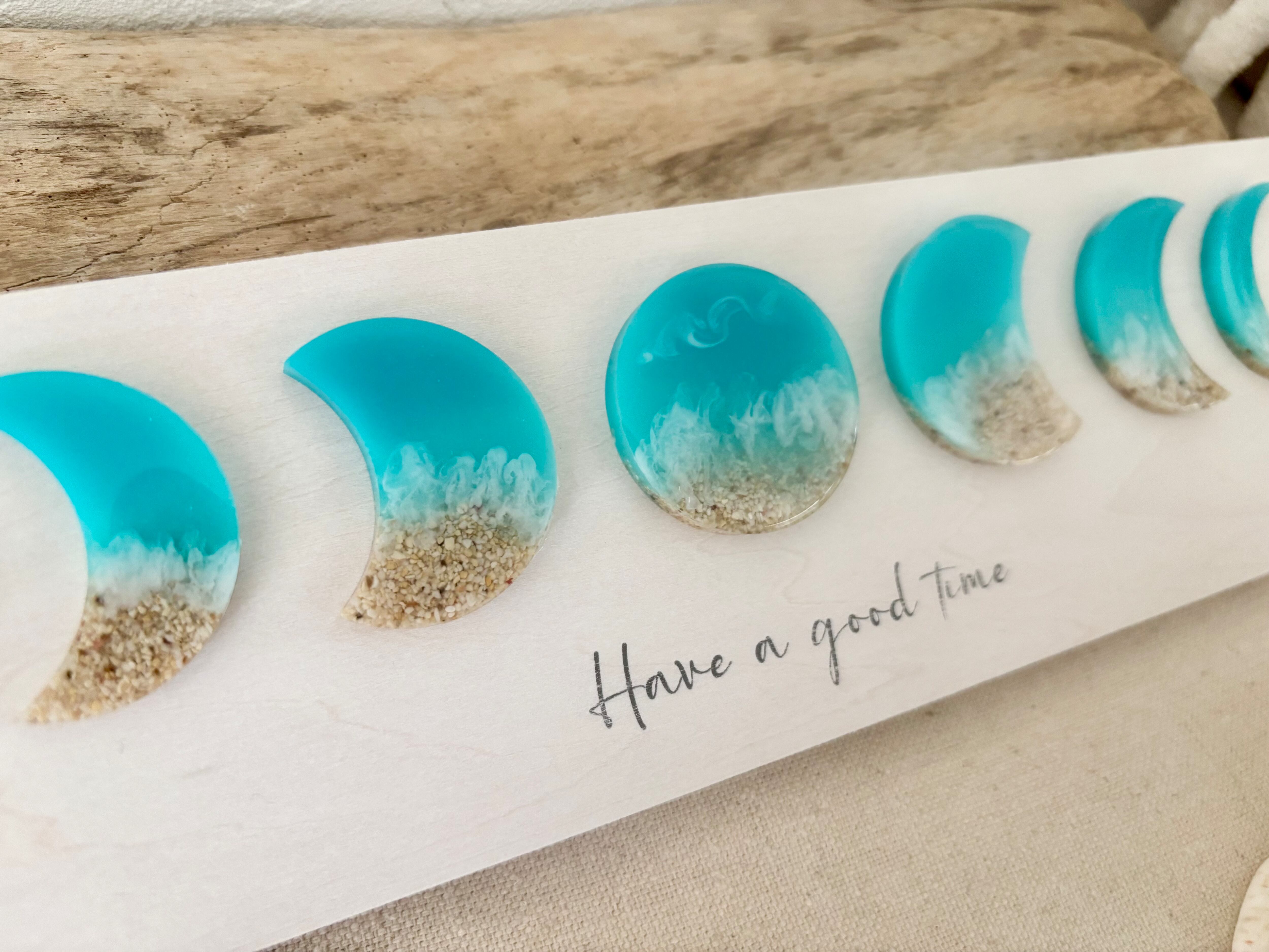 木製壁掛け 月の満ち欠け(レジン)「Have a good time 」
